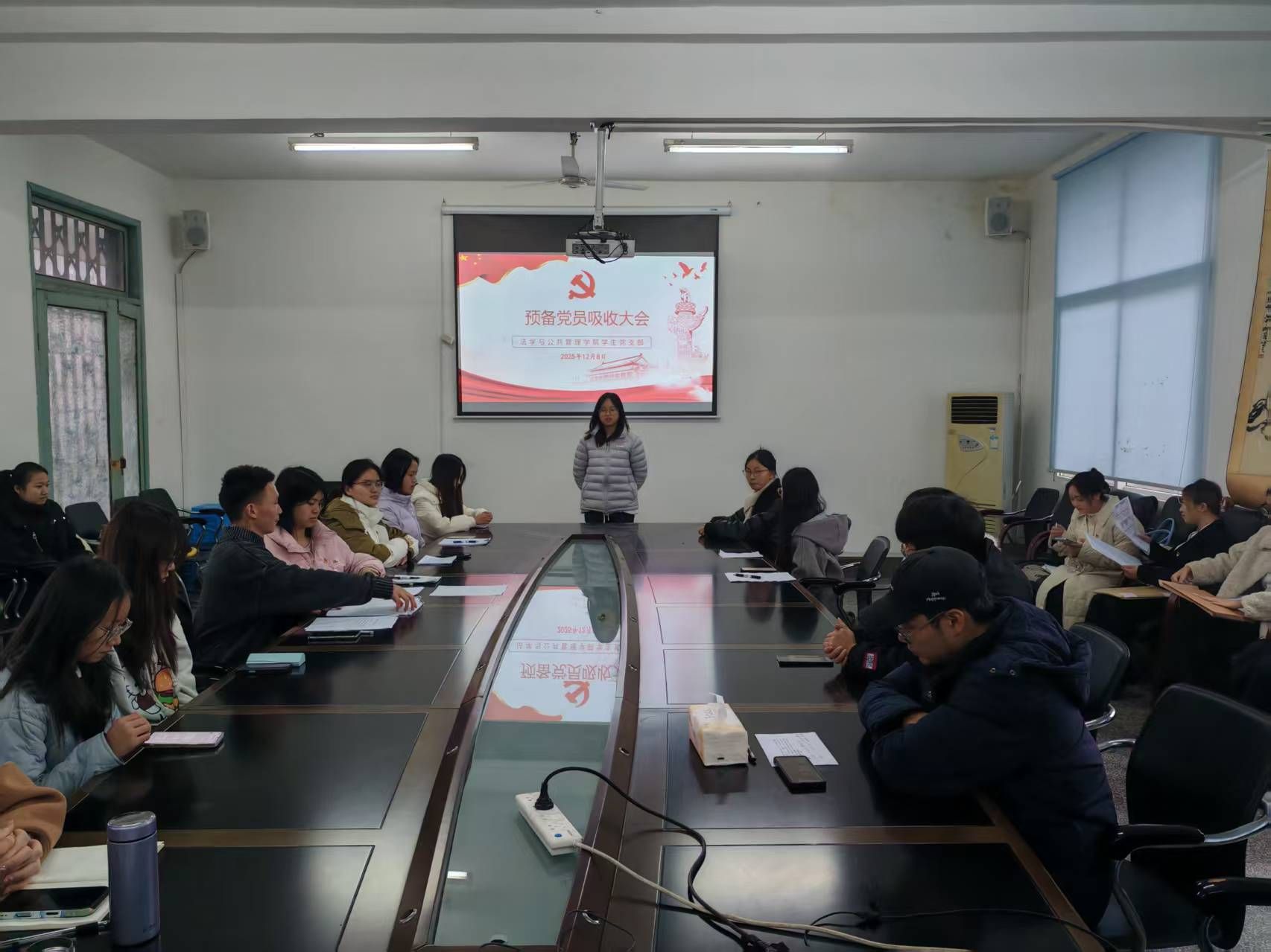 本网讯(文/陈志龙 图/李瑶)为严格规范党员发展流程、充实党组织力量,12月8日下午,法管学院学生党支部在博雅楼五楼会议室召开预备党员接收大会,专题讨论接收王雨等10位发展对象为预备党员事宜。会议由学生党支部书记何叶主持,支部全体党员参会。