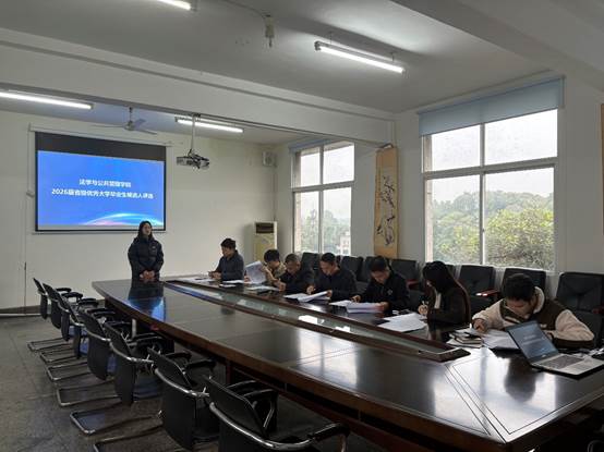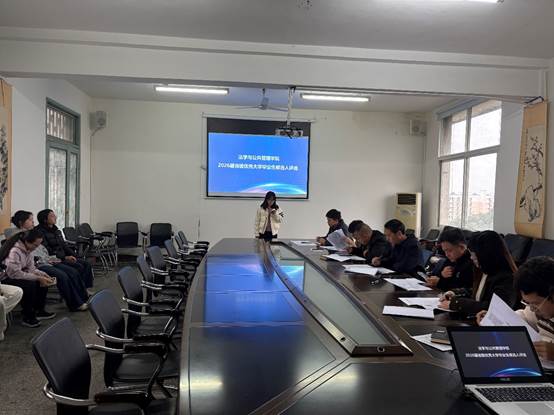 本网讯(文/江琳 图/陈美钰)为落实立德树人根本任务,培养德智体美劳全面发展的社会主义建设者和接班人,法学与公共管理学院于11月17日在学院五楼会议室组织了2026届优秀大学毕业生评选活动。法管学院党委书记黄显刚,副书记杨兵,副院长赵勇,教师代表,各年级辅导员以及学生代表共同参与了评选活动。本次评选活动由江琳主持。
