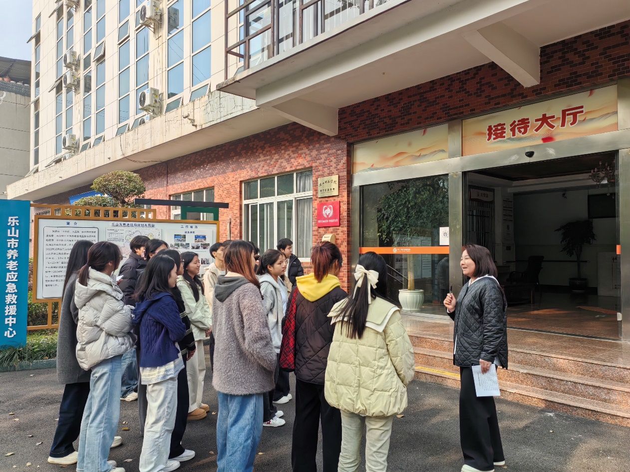 本网讯(文/何天琪、李赖鑫 图/丁木乃 审核/赵勇)近日,法管2024级社会工作班全体学生在丁木乃老师的带领下,奔赴乐山市社会福利院,开启实践周专项参观活动。这场以“沉浸式感知养老服务”为主题的实践,让社工专业学子跳出课本,在真实场景中触摸老年服务的肌理。