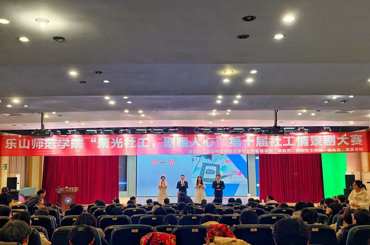 本网讯(文/伍怡、李如春 图/伍怡 审核/赵勇)为了深化对专业的认知,锤炼专业技能与实务能力,12月5日晚,法学与公共管理学院在旷怡楼学术报告厅成功举办第十届“聚光社工 剧暖人心”社工情景剧大赛。本次大赛由法管学院主办,嘉和社工社团承办,英美牙科协办,法管学院党委书记黄显刚、院长苏祥、副院长赵勇,教学部副部长李磊,英美牙科张公桥店负责人程静和英美牙科总部新媒体主管魏晗,以及社会工作和养老服务管理专业部分老师出席本次活动,2022级和2023级社会工作专业和养老服务管理专业学生参与并观摩了此次比赛。