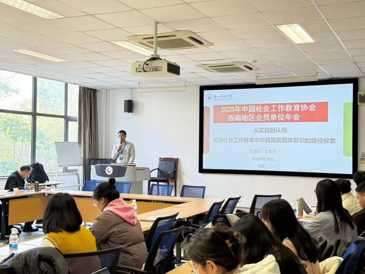 研讨会汇聚了西南地区社会工作教育与实务领域的众多专家学者,围绕中国式现代化背景下社会工作高质量发展的核心议题展开了深入交流与讨论。在分论坛(一)“党的社会工作理论体系构建与西南实践探索”中,我院丁木乃以《从实践到认同:民族社会工作铸牢中华民族共同体意识的路径探索》为题作了精彩汇报,分享了我院在民族社会工作领域的实践与理论思考,获得了与会同仁的积极反响。