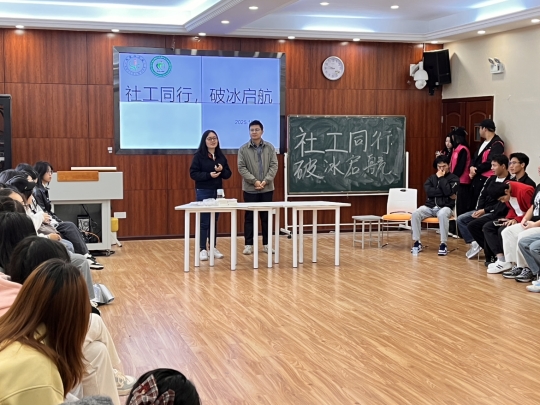 本网讯(文/江琳、谢芷萱 图/谢芷萱)为帮助25级社工一班、二班学子打破陌生壁垒、凝聚班级力量,10月25日上午,法学与公共管理学院微爱社工站于实训楼A510、A504开展“社工同行,破冰启航”主题破冰活动。社工专业系主任李如春、专任教师吴华,微爱社工站学生干部、嘉和社工站志愿者及两班全体同学共同参与。