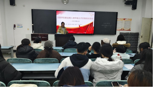 (本网讯文/陈志龙 图/李瑶)为深化入党积极分子的红色文化学习,厚植爱党爱国情怀,12月8日中午,法学与公共管理学院第52期入党积极分子红书分享活动在行知楼113教室顺利开展,本期全体积极分子参与活动。